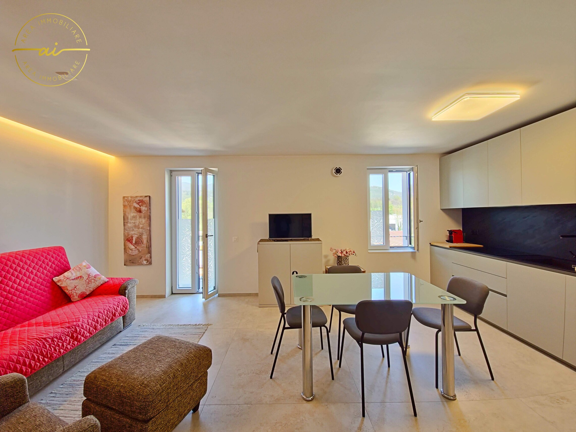 La zona notte comprende una spaziosa camera matrimoniale e una seconda camera singola, perfetta come stanza per bambini, ospiti oppure studio. Il cuore dell'abitazione è rappresentato dalla luminosa zona giorno con cucina moderna a vista, pensata per favorire la convivialità e la praticità nella vita quotidiana. Da qui si accede a un grazioso balconcino, ideale per godersi momenti di relax all'aria aperta.
