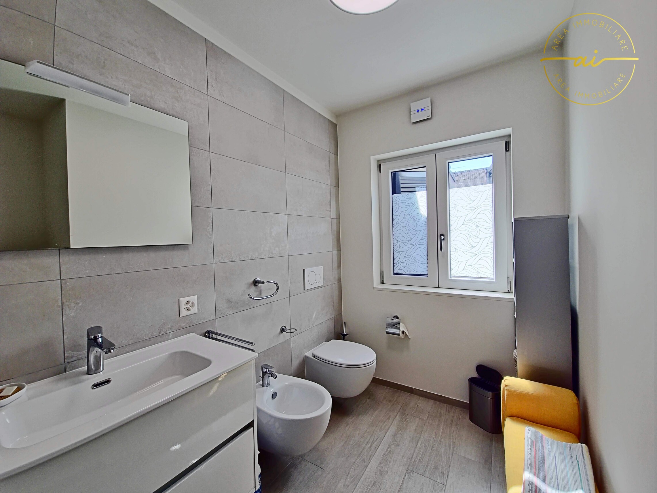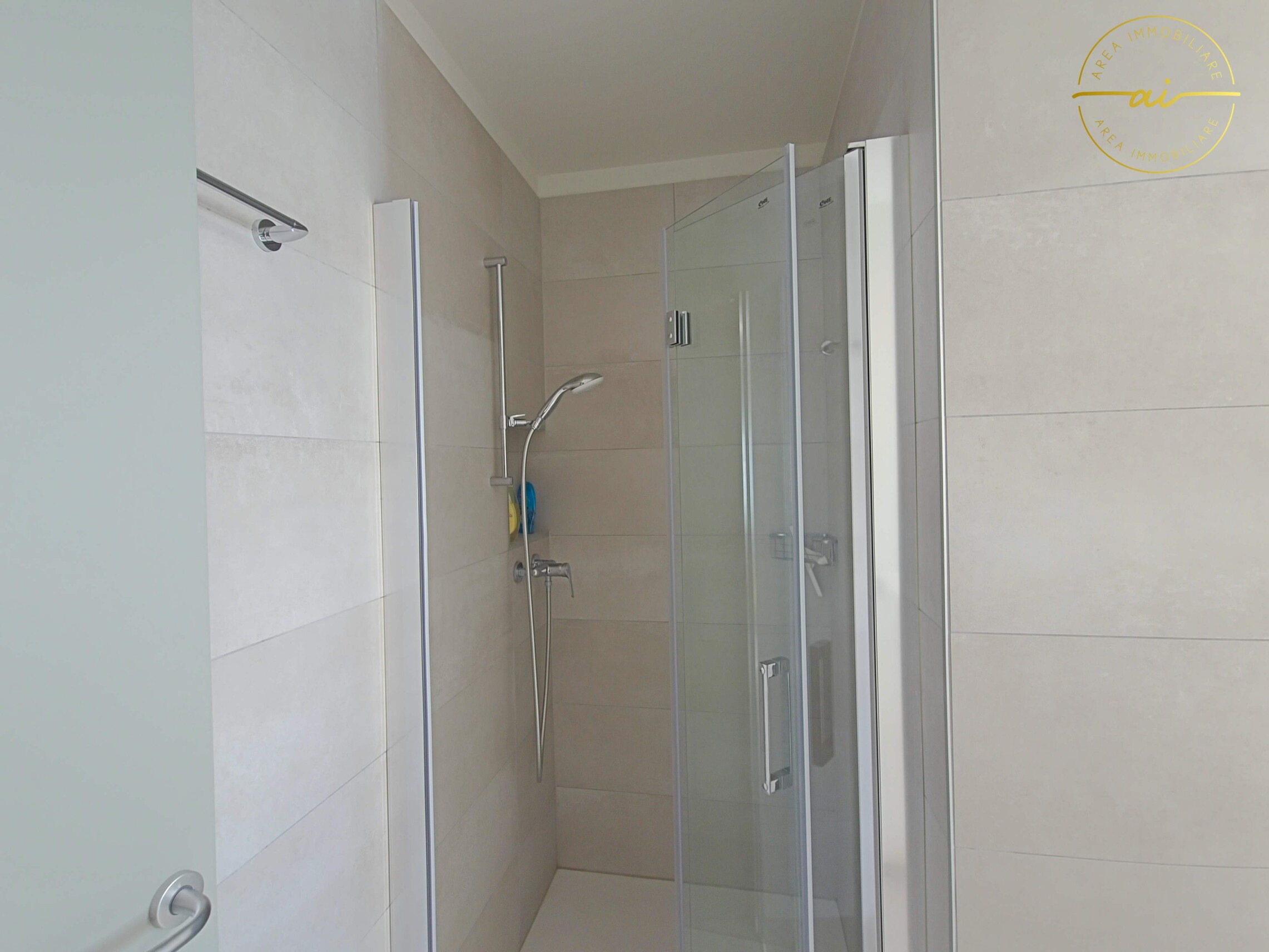 L'ampio bagno finestrato è rifinito con gusto ed è dotato di doccia, bidet e di un pratico spazio dedicato alla colonna lava-asciuga, un elemento sempre più richiesto per il comfort domestico.