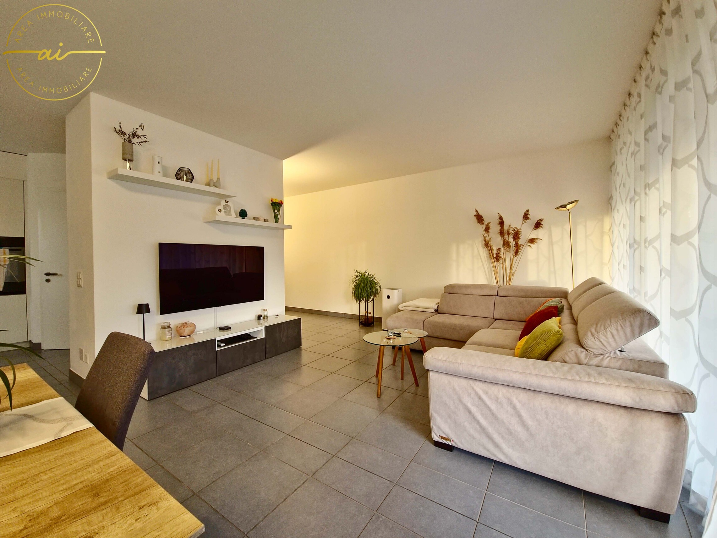 L'ampio corridoio d'entrata introduce alla spaziosa zona giorno, impreziosita da grandi porte finestre che lasciano entrare una splendida luce naturale e offrono l'accesso diretto alla generosa terrazza, da qui si può godere di una piacevole vista aperta, la cucina, moderna e completamente attrezzata, è integrata in modo armonioso nel soggiorno, creando un ambiente conviviale e funzionale, di fianco la cucina troviamo un ripostiglio adibito a lavanderia in casa.
