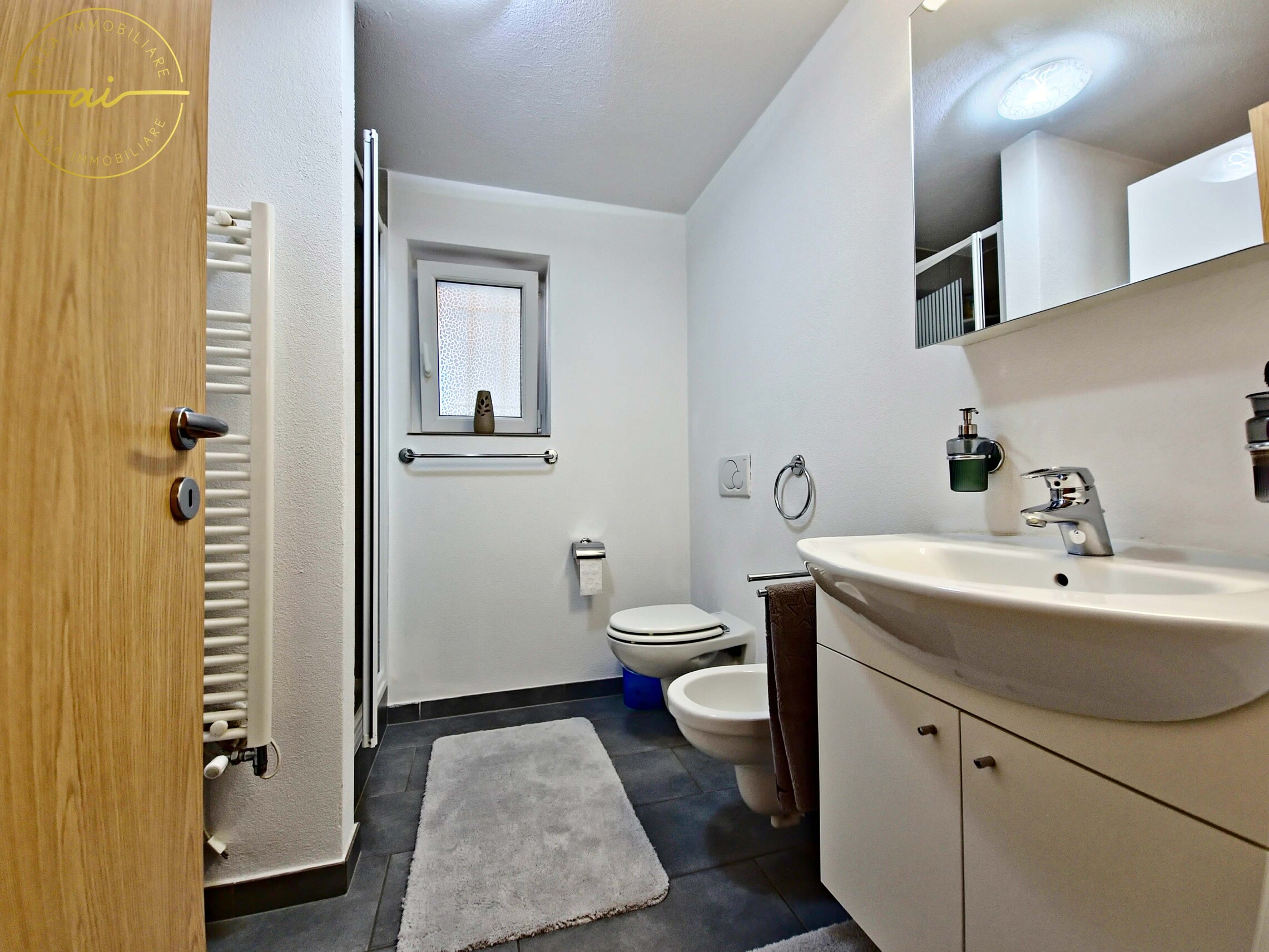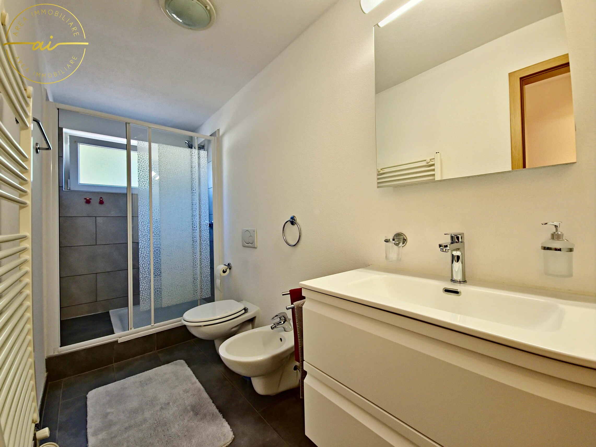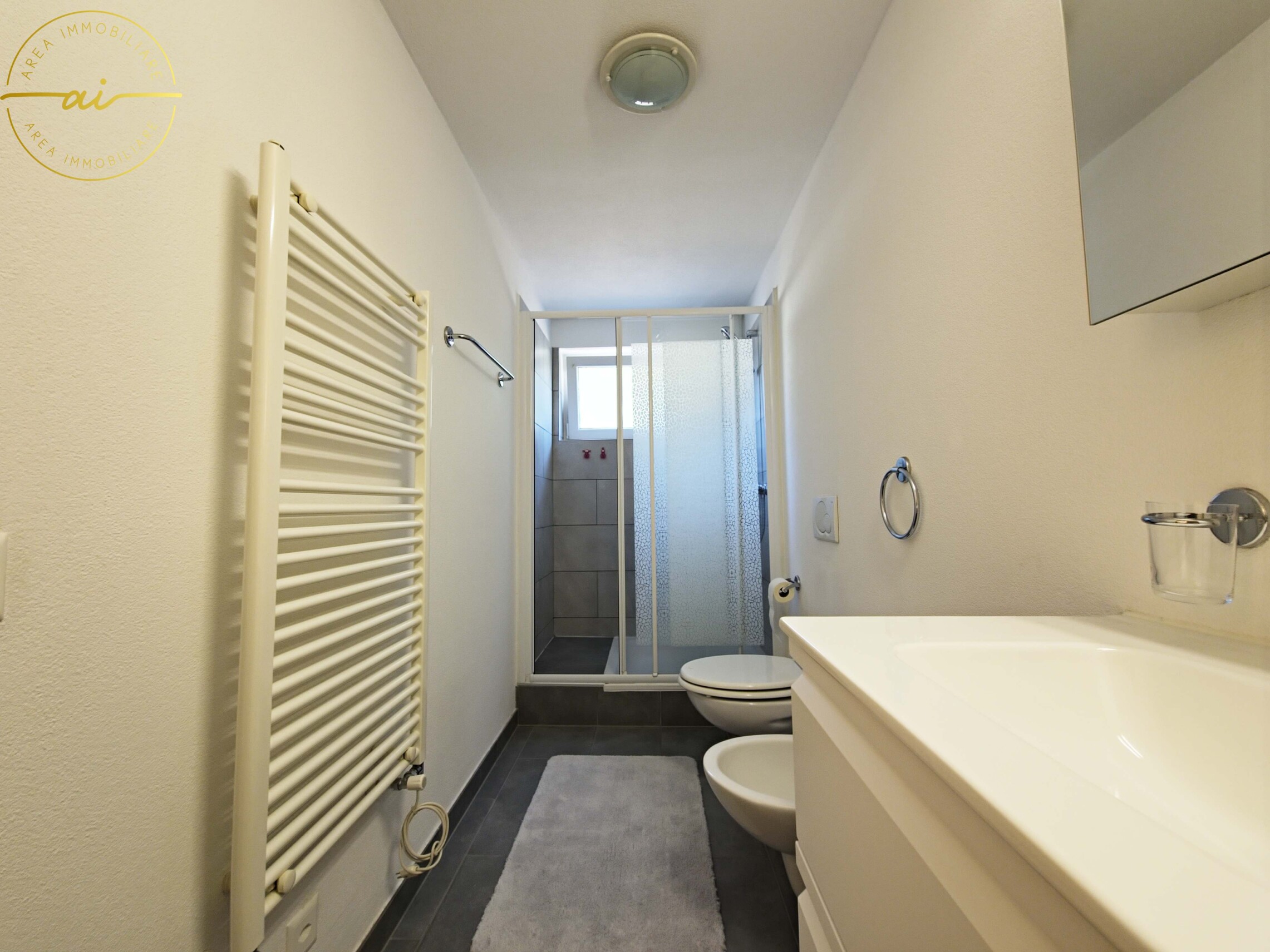 Tramite un semi piano si accede a una zona composta da una camera da letto, un bagno finestrato con box doccia e colonna lavasciuga, oltre a un pratico ripostiglio ideale per la gestione della casa.