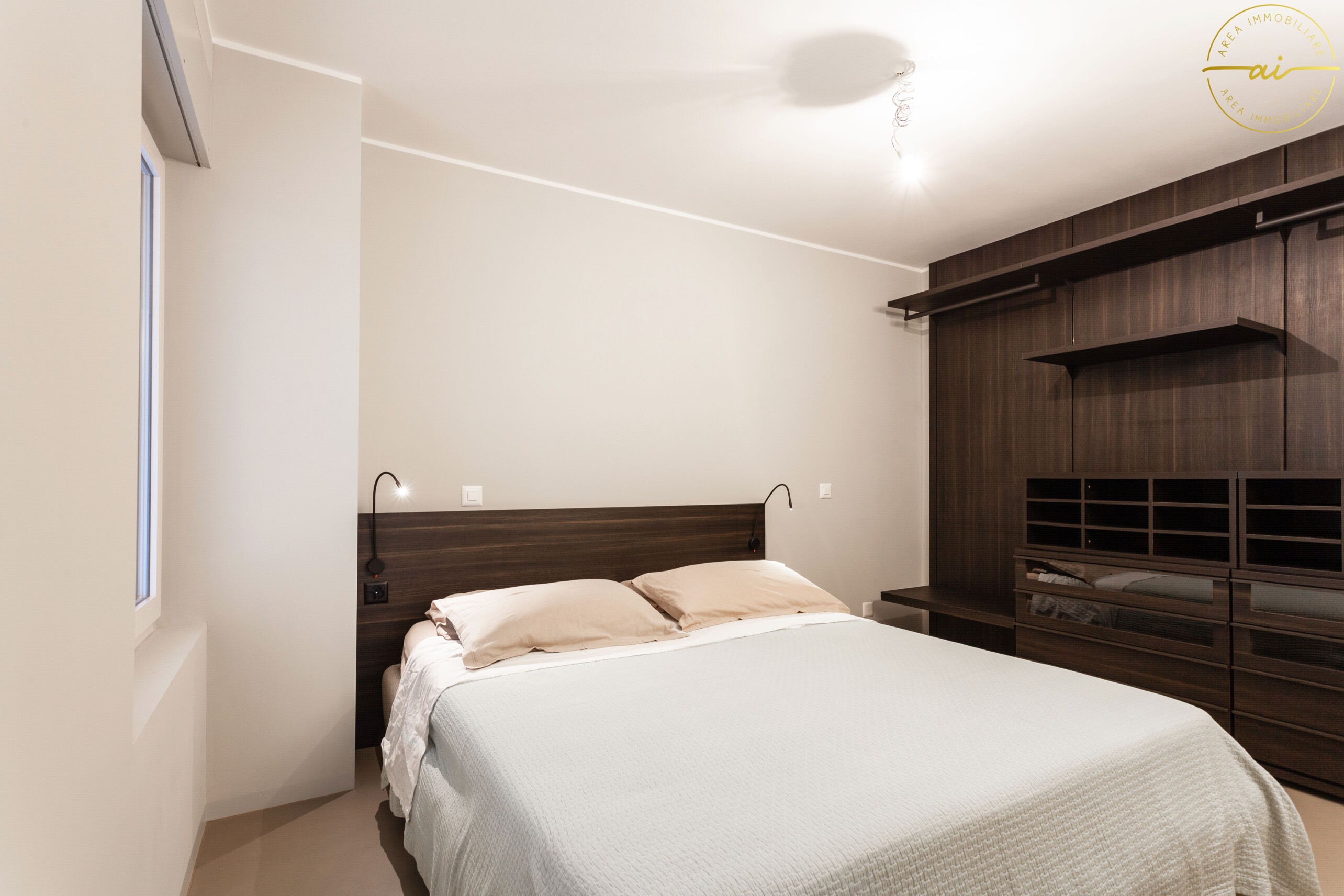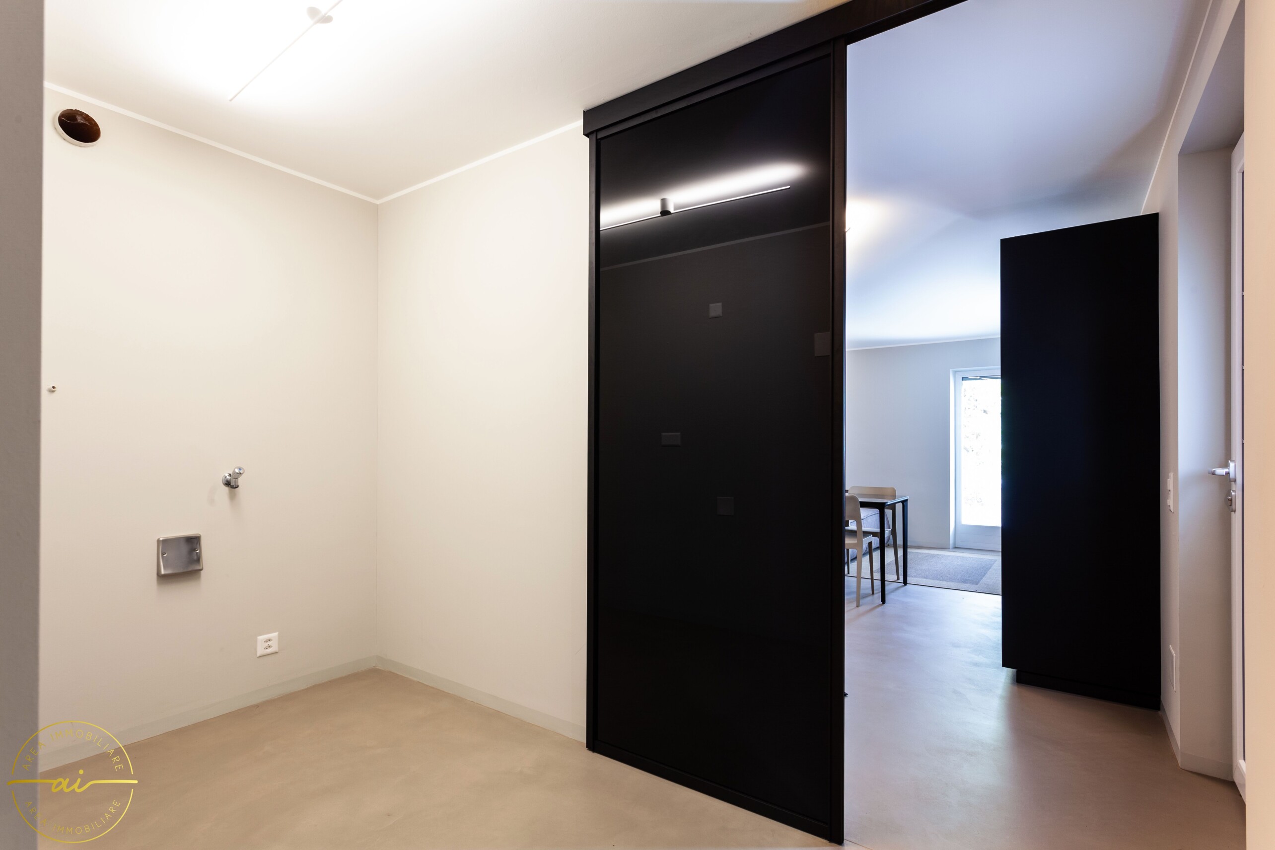 L'ingresso conduce alla luminosa zona giorno composta da un accogliente soggiorno con cucina a vista, realizzata con elettrodomestici di ultima generazione e rifinita con materiali di alto standing, con uscita diretta sulla straordinaria terrazza privata di circa 95 mq, dalla quale si può ammirare una spettacolare vista aperta sul lago. La zona notte comprende una camera matrimoniale arredata con armadio a muro su misura e letto. Completa la distribuzione interna un'anticamera utilizzabile come locale studio, dotata di attacchi per lavatrice, ed un bagno moderno con doccia.