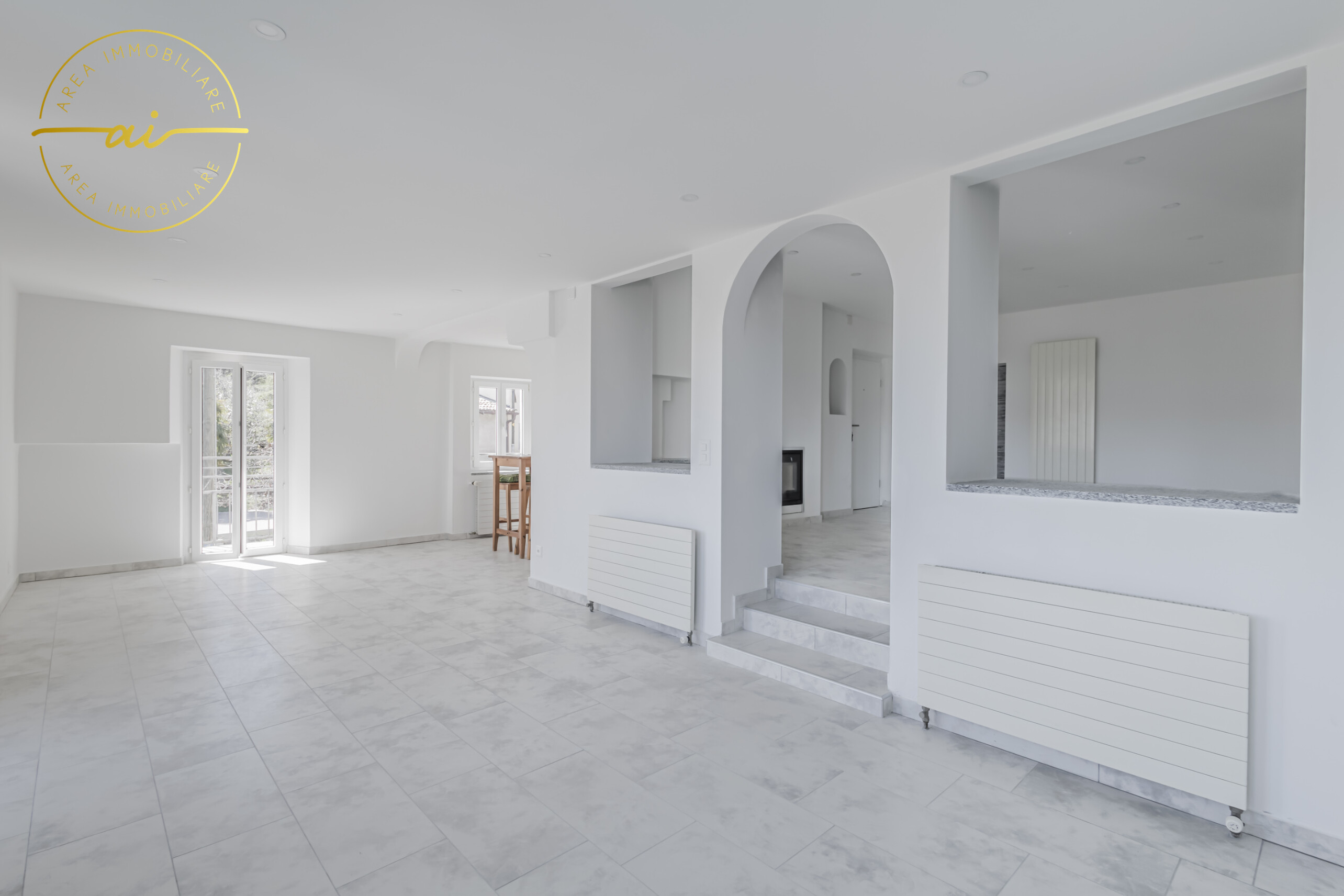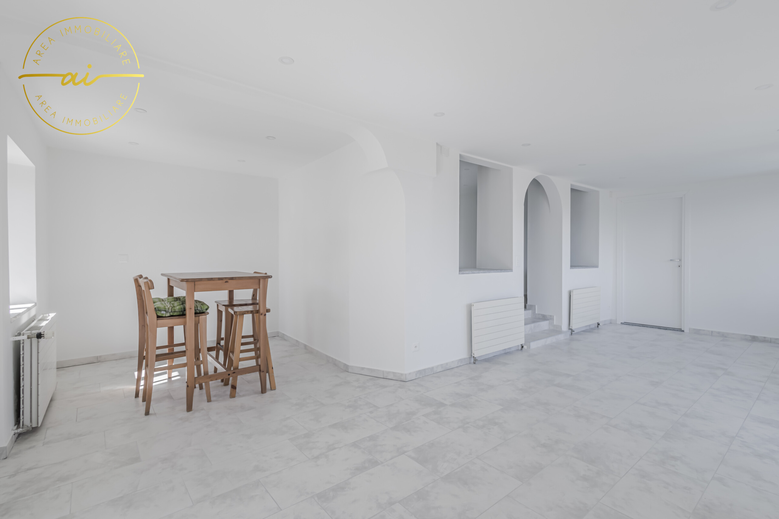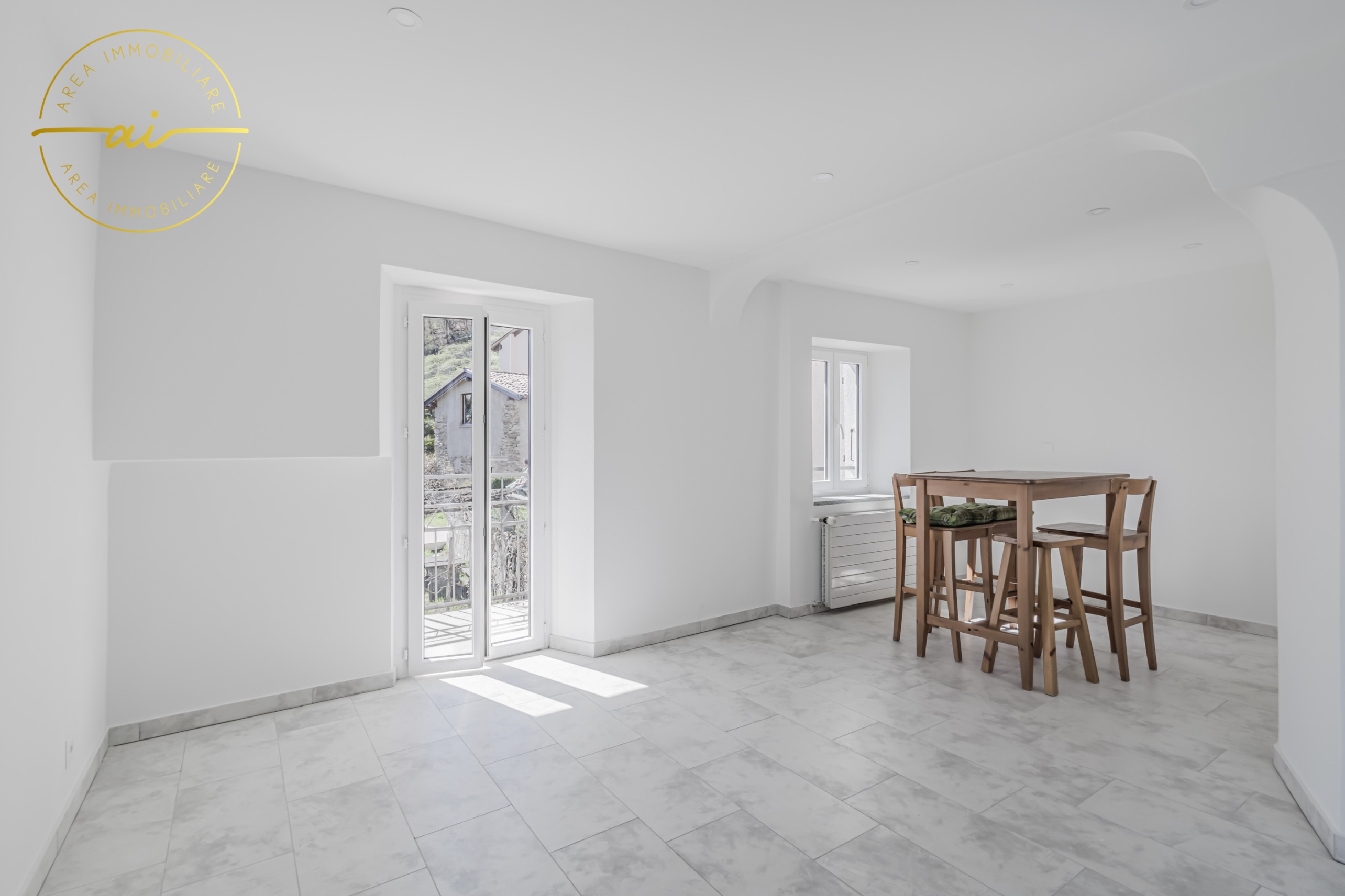 Die Wohnung wurde im Jahr 2023 komplett renoviert und verfügt über hochwertige Ausstattungsmerkmale wie Steinzeugböden, Heizkörper, die an eine mit einem Ölkessel betriebene Zentralheizung angeschlossen sind, sowie doppelt verglaste PVC-Fenster und -Türen.