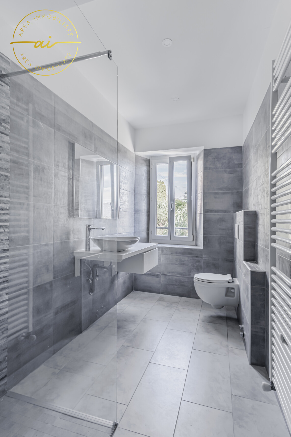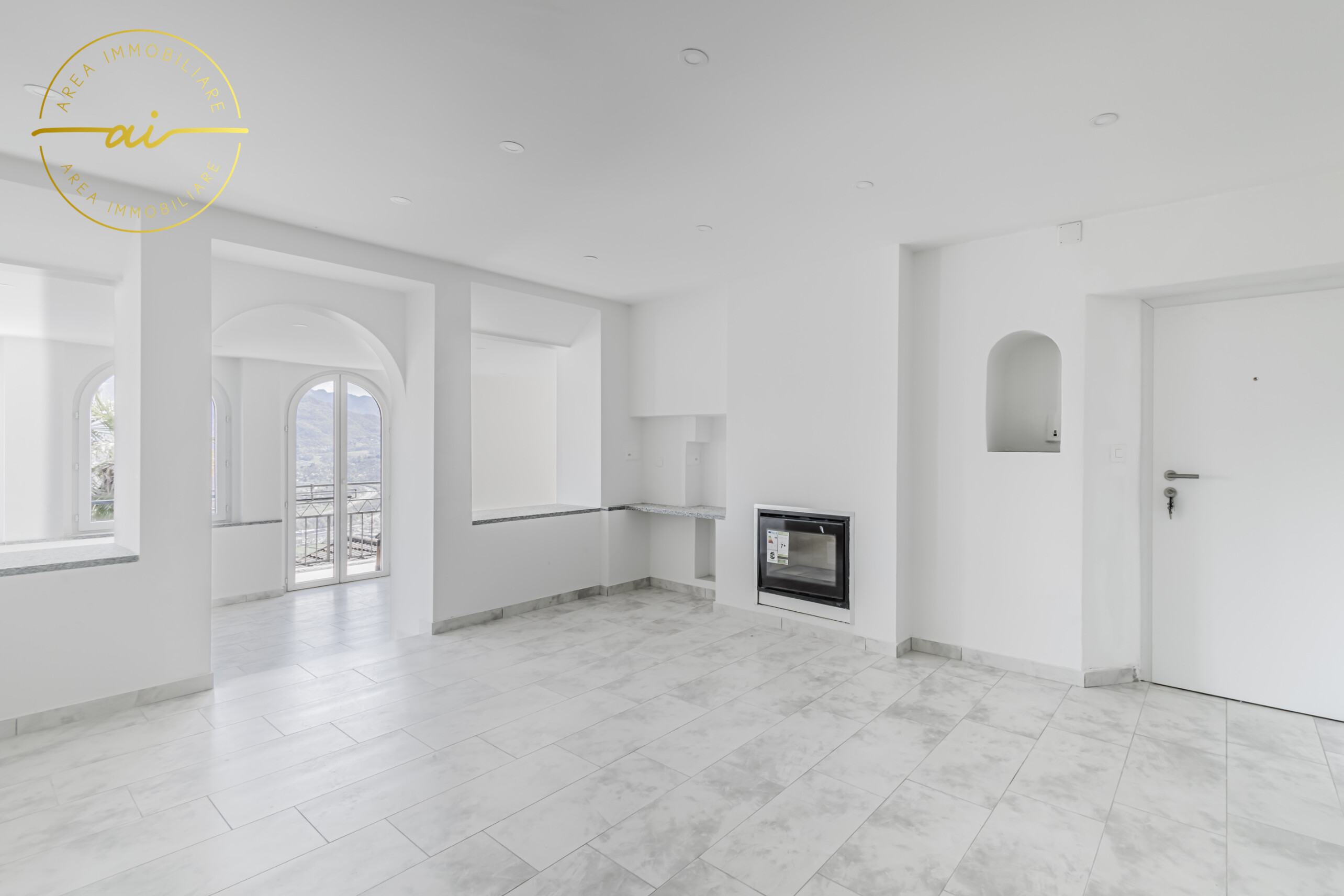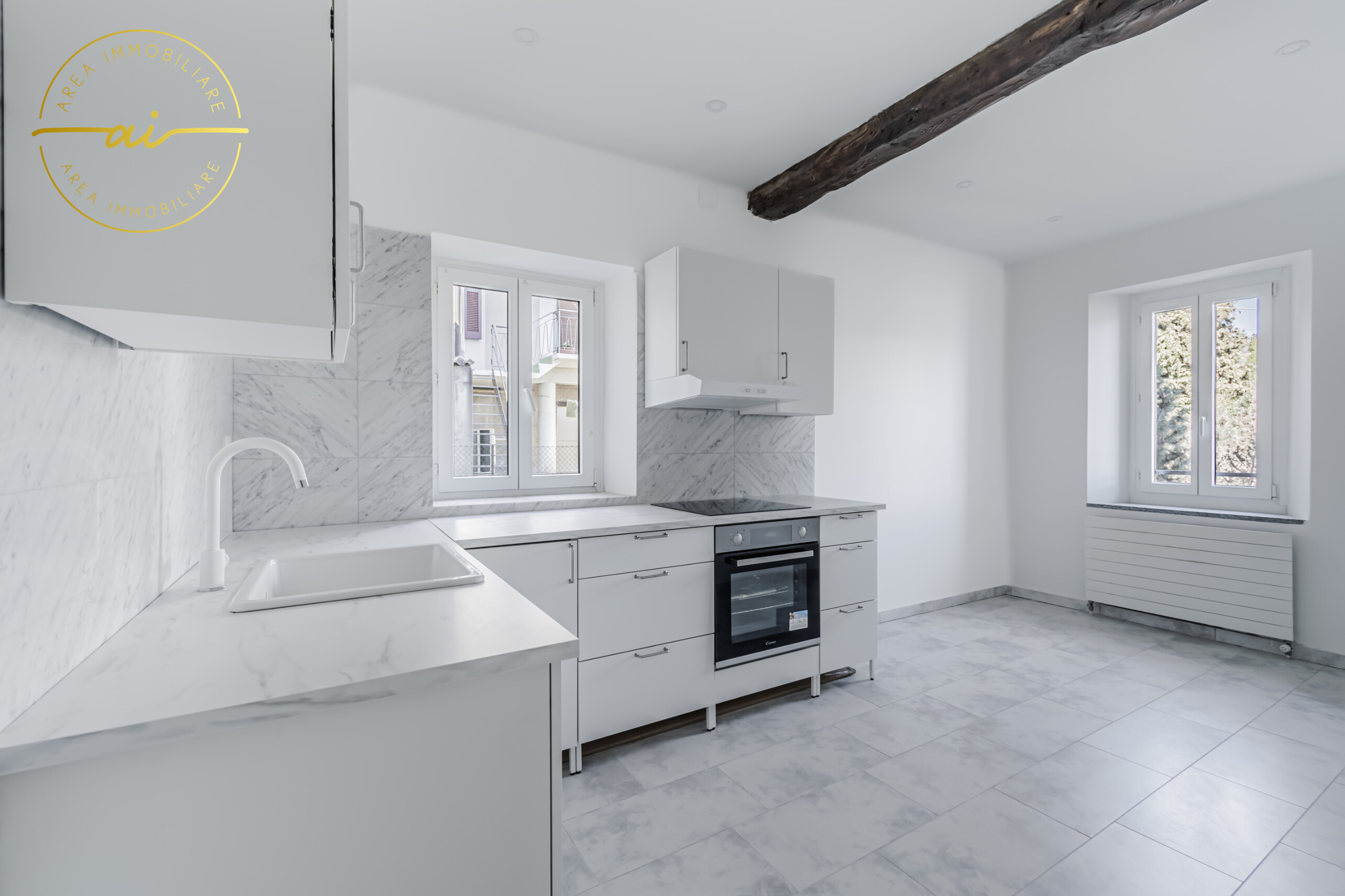 Die Wohnung wurde im Jahr 2023 komplett renoviert und verfügt über hochwertige Ausstattungsmerkmale wie Steinzeugböden, Heizkörper, die an eine mit einem Ölkessel betriebene Zentralheizung angeschlossen sind, sowie doppelt verglaste PVC-Fenster und -Türen.
