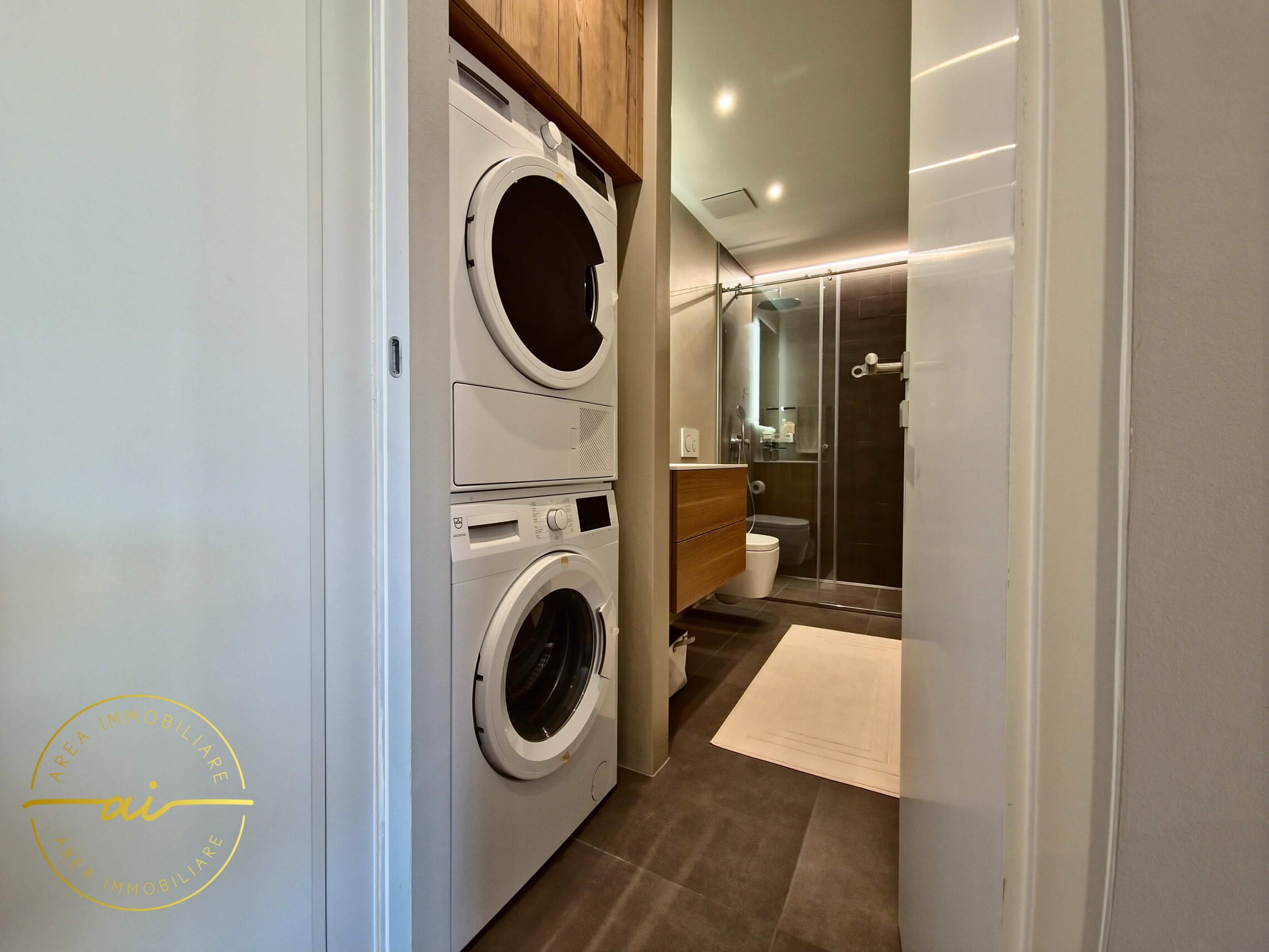 La zona notte comprende una spaziosa camera matrimoniale con bagno en suite e cabina armadio e una seconda camera da letto di generose dimensioni. È presente un'altro bagno moderno con doccia, attrezzato con colonna lavatrice/asciugatrice, per garantire la massima praticità.